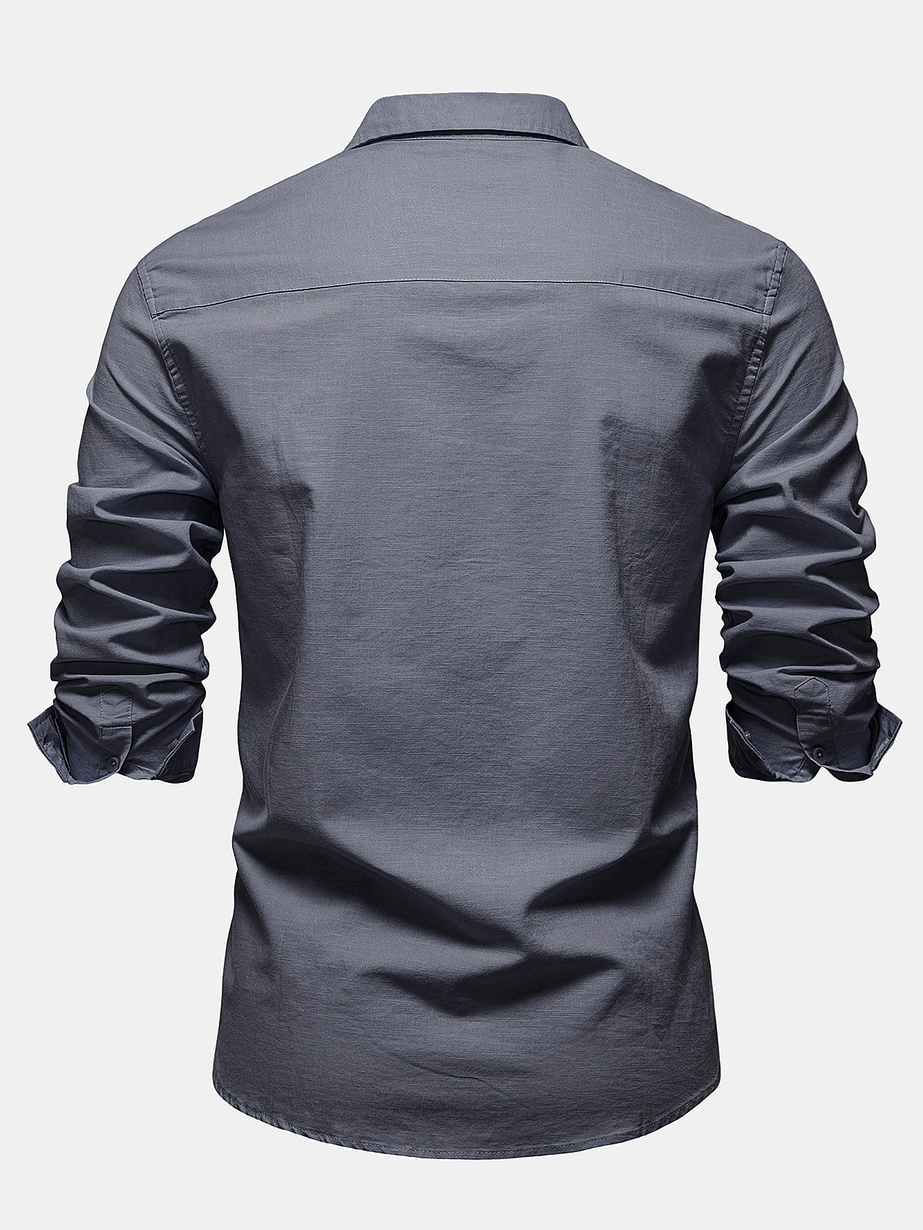 قميص مزيج من الكتان والقطن بأكمام طويلة وجيب