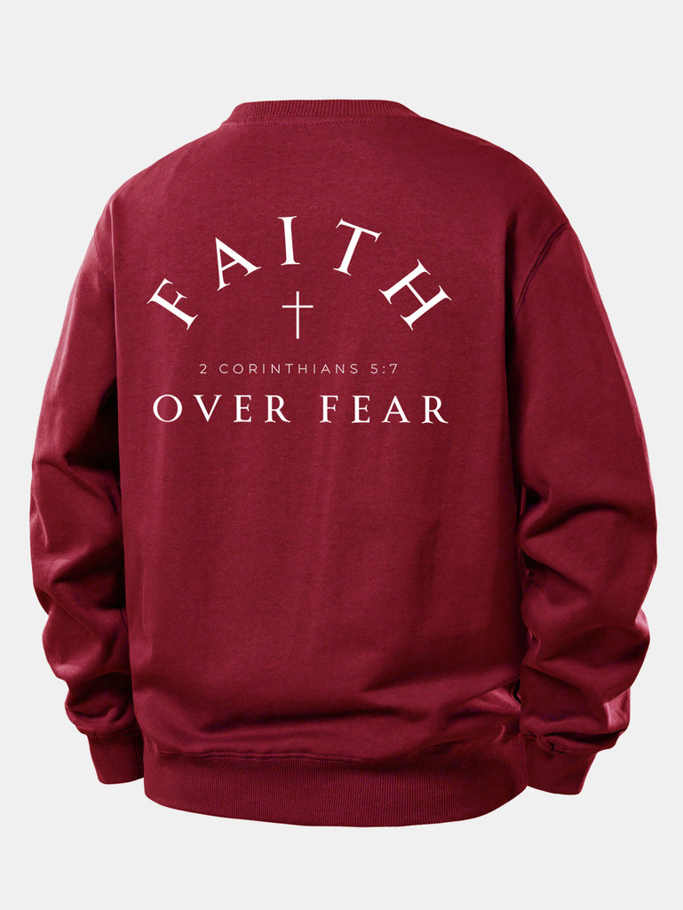 Featuring the uplifting ''Faith Over Fear'' slogan, this cozy sweatshirt is a daily reminder to stay strong and hopeful. Crafted from soft, breathable fabric with a relaxed fit, it offers ultimate comfort and effortless style — perfect for casual days, lounging, or faith-based gatherings.