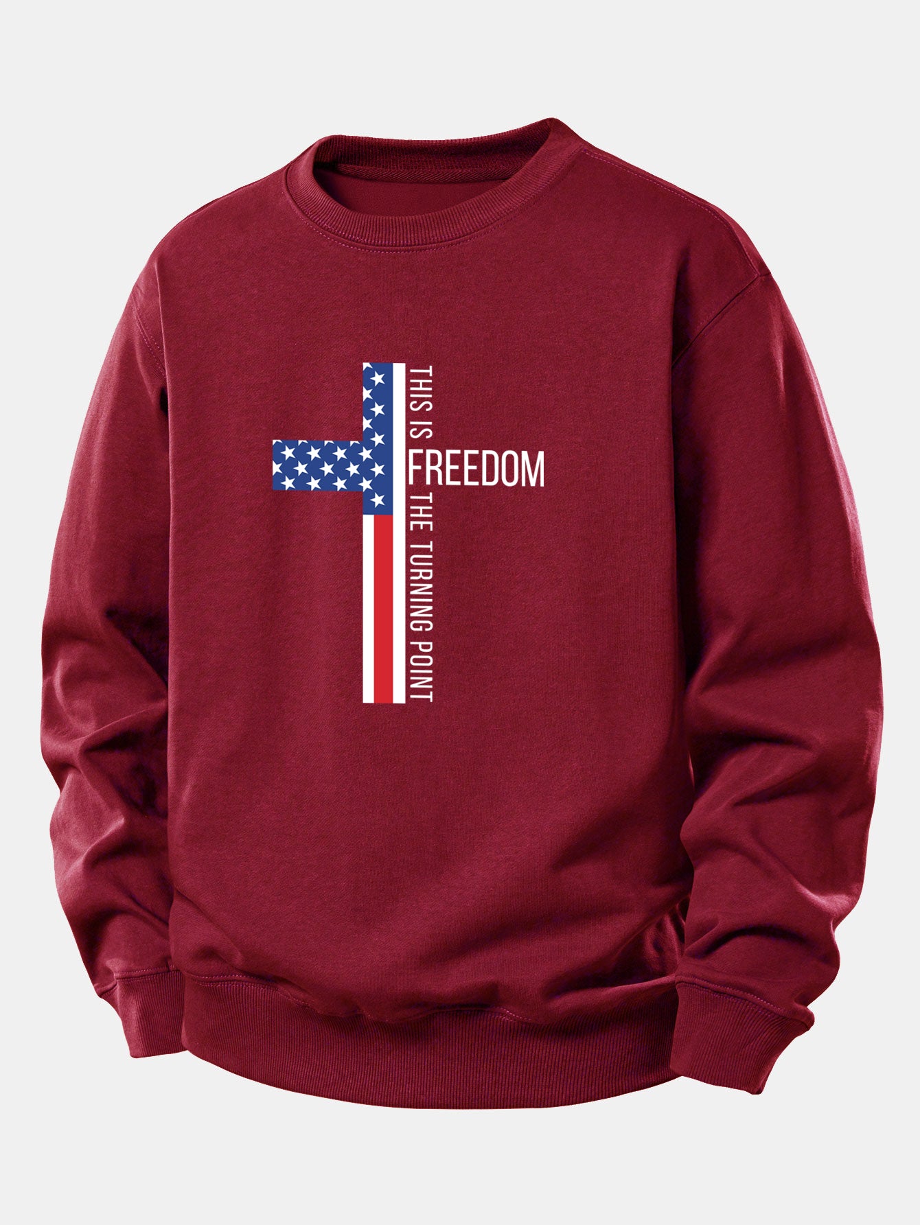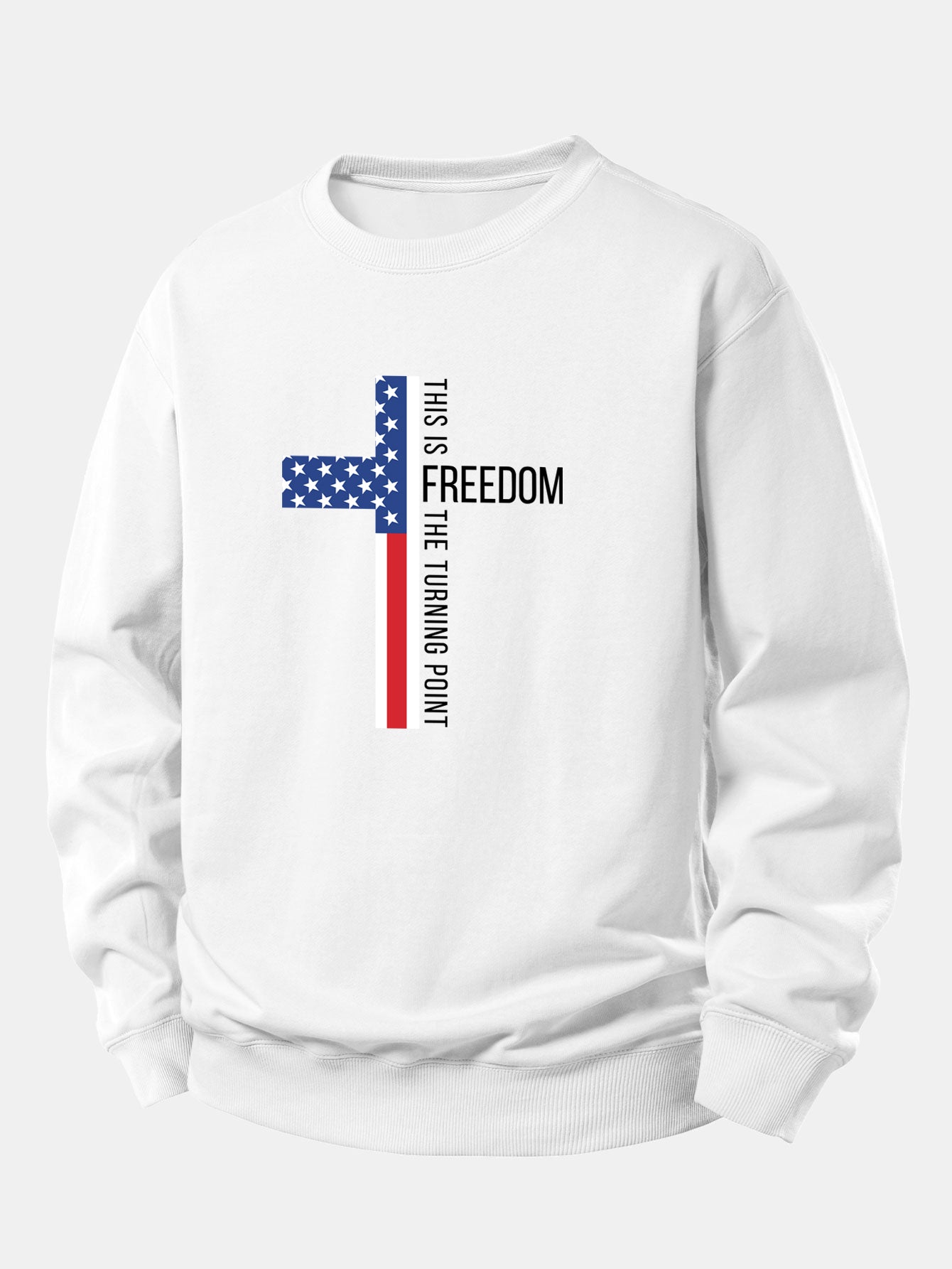 Featuring a bold ''FREEDOM'' slogan paired with a classic American flag graphic, this sweatshirt blends comfort and national pride effortlessly. Made from soft, breathable fabric with a relaxed fit, it's perfect for everyday wear, patriotic holidays, or casual outdoor gatherings.