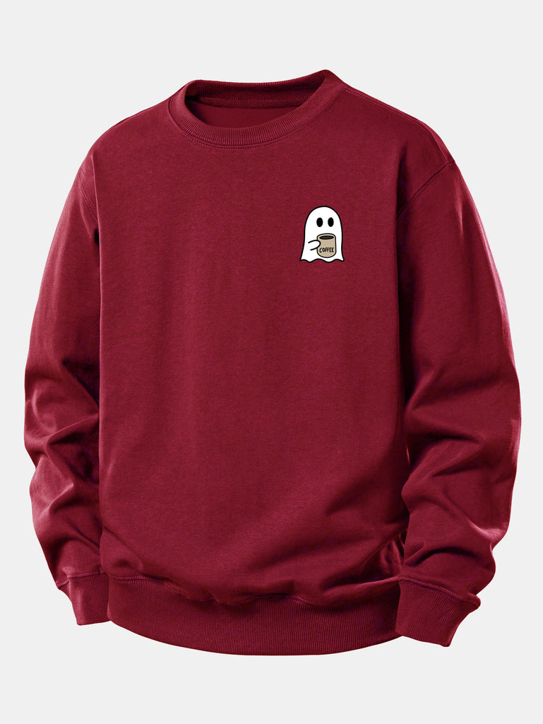 Ghost Drinking Coffee Print Relax Fit Sweatshirt