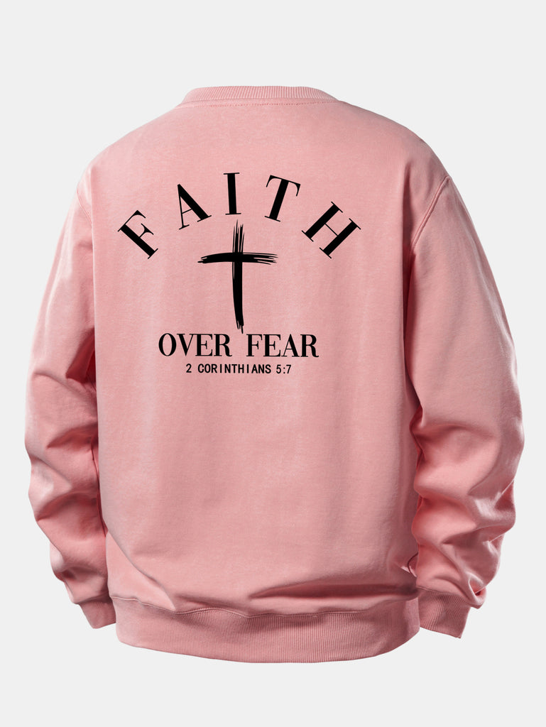 Featuring the uplifting ''Faith Over Fear'' slogan, this cozy sweatshirt is a daily reminder to stay strong and hopeful. Crafted from soft, breathable fabric with a relaxed fit, it offers ultimate comfort and effortless style — perfect for casual days, lounging, or faith-based gatherings.
