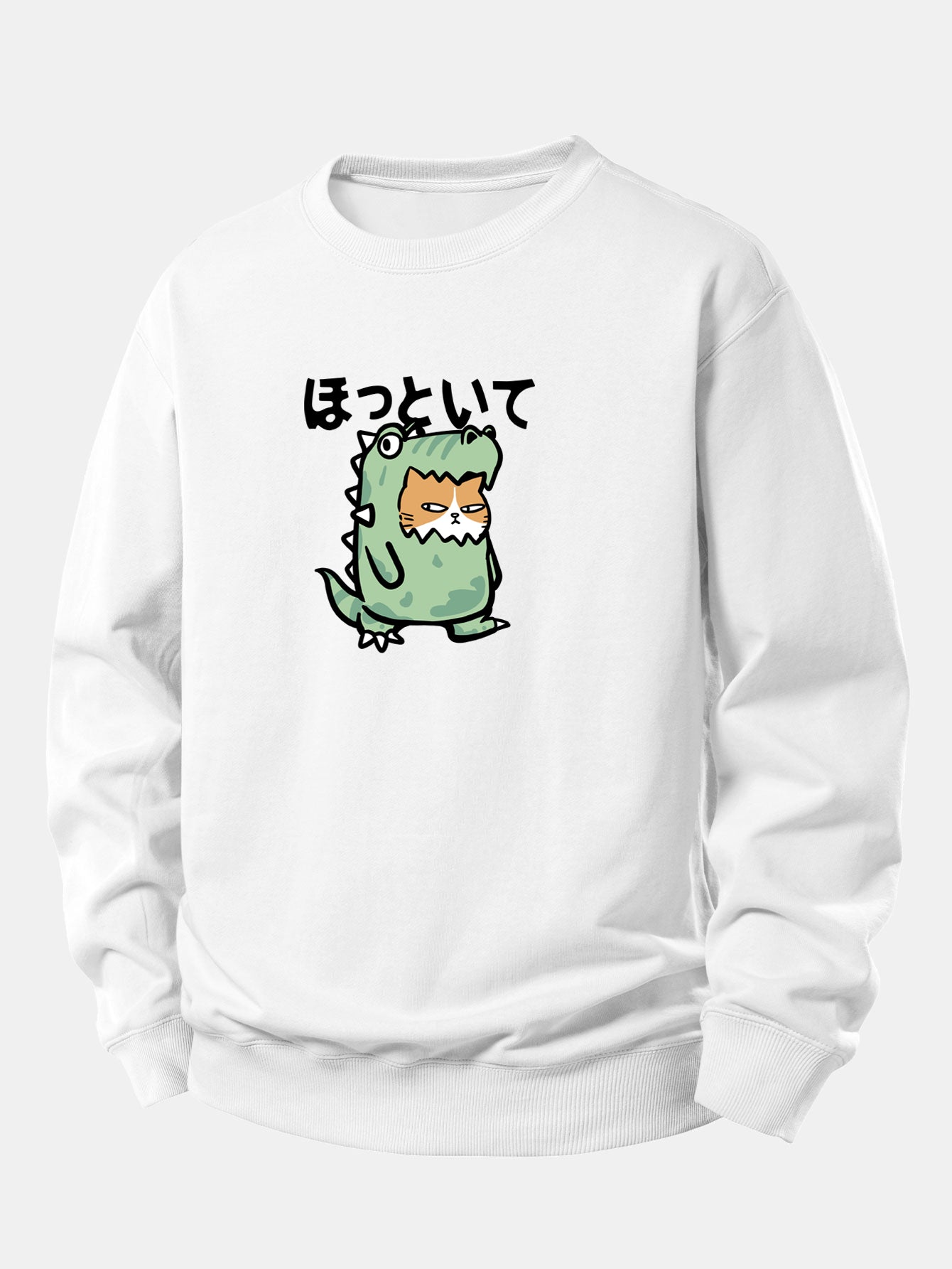 Cat In A Dinosaur Costume Print Relax Fit Sweatshirt